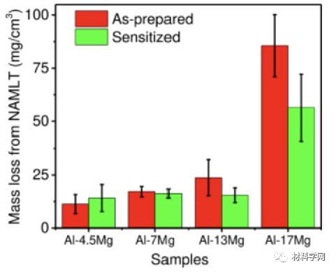 图13所示为制备和敏化处理的Al-Mg合金的NAMLT结果。