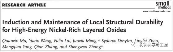 近日,江西理工大学材料冶金化学学部新能源动力电池及其材料研究所马全新副教授,在国际知名期刊Small Methods(中科院一区TOP,IF=14.188)上发表题为“Induction and Maintenance of Local Structural Durability for High-energy Nickel-rich Layered Oxides”的最新研究成果。马全新副教授为论文第一作者,钟盛文教授为论文通讯作者,江西理工大学为第一通讯单位。