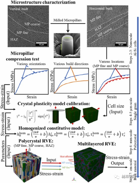(5)已经提出了一种解决塑性变形的多尺度建模方案。这种建模策略对于描述 LPBF AlSi10Mg 的跨尺度、分层和异质微观结构的力学行为是适当和必要的。