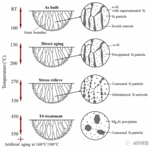 图6:印后热处理对LPBF AlSi10Mg组织的影响。
