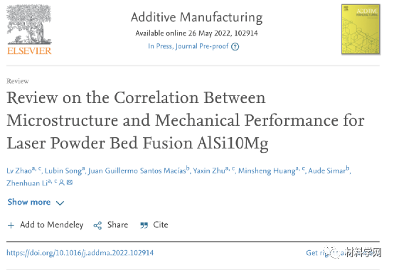 尽管如此,研究人员仍在继续探索 LPBF AlSi10Mg,他们所付出不仅来自工业界寻求进一步工艺参数优化的巨大努力,而且来自研究微观结构和机械性能之间联系的材料力学领域的巨大努力。这两种努力的结合将允许建立从最佳工艺参数到健全的微观结构,最后到所需的机械性能或功能的路线图。特别是随着机器学习 (ML) 或深度学习 (DL) 的发展,研究人员开始寻求最佳参数,评估内部孔隙缺陷并使用 ML 方法预测力学性能,丰富的金属增材制造数据构成一个完美的数据库。此外,使用先进的原位测试技术,通过透射扫描显微镜 (TEM)、同步加速器 X 射线衍射 (SXRD) 或中子衍射,获得了基本变形机制、相间内应力分配和变形过程中初始孔隙度的演化,以定性或定量地探究。因此,微观结构与力学性能之间的综合相关性具有重要意义,将是未来研究的重点。