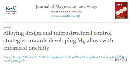 导读:镁(Mg)合金由于其固有的低密度和高比强度,是有前途的轻质结构材料,特别是在交通运输和航空航天领域。大多数高强度镁合金在室温下表现出较差的成形性和延展性,这限制了它们的广泛应用。通过适当的合金化设计和/或精细的微观结构控制,一些新开发的镁合金包括稀土 (RE) 和不含稀土的镁合金,在不显著降低强度的情况下表现出增强的延展性。本文为了找出其中的关键原因,从合金化设计策略和先进加工技术的微观结构控制等方面回顾了近期关于韧性镁合金的研究。在这篇综述中,本文从合金化设计策略和通过先进加工技术进行的微观结构控制方面回顾了具有增强延展性的镁合金的最新发展。它可以通过适当的合金化设计与智能微结构控制相结合,为制造具有增强的成形性和延展性的镁合金提供见解。