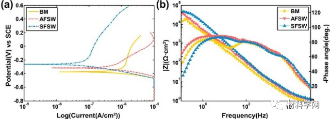 图14两种接头BM和典型SZs的电化学结果:(a) PDP曲线,(b) Bode曲线