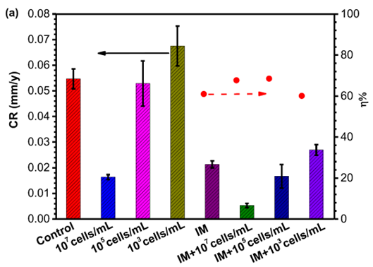 2.阐明了SRB与咪唑啉类缓蚀剂的相互作用行为和机制,进一步丰富了SRB腐蚀防护研究基础。