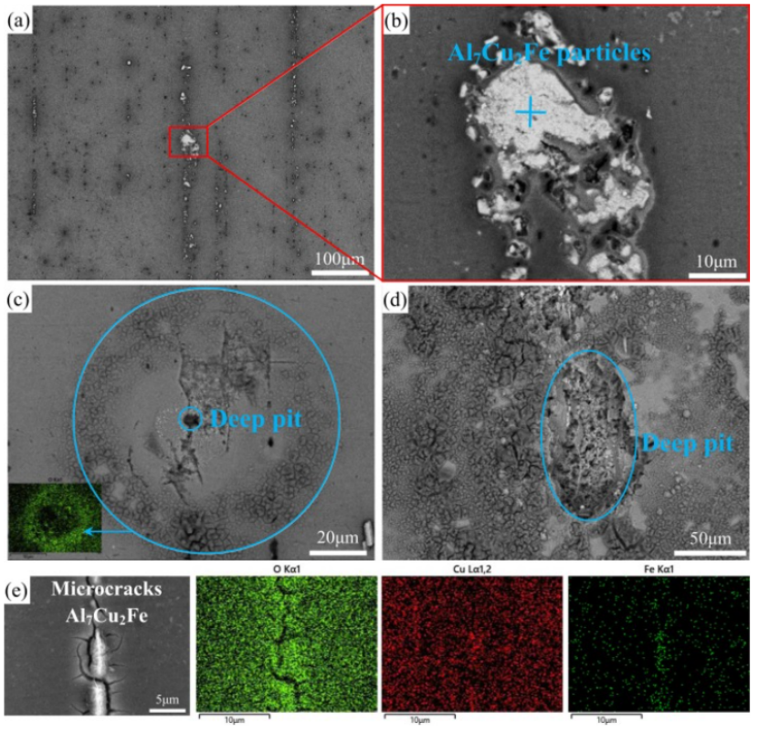 (3)点蚀主要发生在Al基体、Al 7 Cu 2 Fe和Al 2 CuMg颗粒中。最严重的点蚀是由Al 2 CuMg 颗粒引起的,这种颗粒的数量可以通过喷涂成型工艺减少。LSP 引入的位错、层错、滑移线和亚晶界可以为快速形成连续和保护性钝化膜创造大量位点。