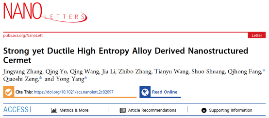 香港城市大学Nano Letters:强度 3.2GPa,延展性50%!高熵合金金属陶瓷获得突破性进展!