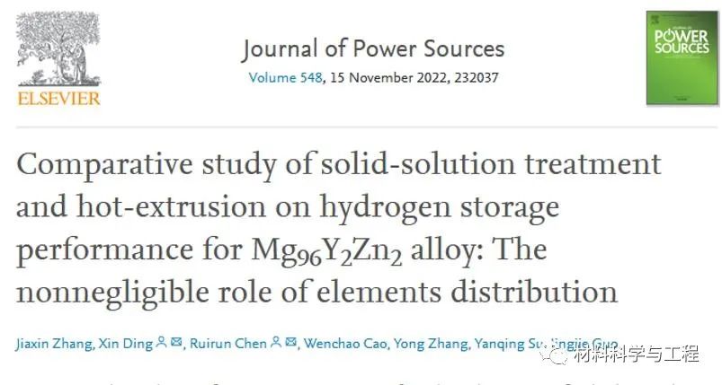 氢能的发展不仅可以实现“0碳”排放,助力我国“双碳目标”的达成,还能够解决能源危机,提高人民生活水平。因此氢能的发展成为国内外关注的重点。镁合金具有高理论储能能力(7.6 wt%),且价格低廉,是一种理想的储氢材料,但是氢化物过于稳定导致难以放氢,并且致密氢化产物导致氢难以扩散。在这项工作中,研究人员分别通过固溶处理和热挤压两种方法对Mg-Y-Zn合金进行处理,获得具有良好吸放氢动力学的长周期结构 (LPSO)。
