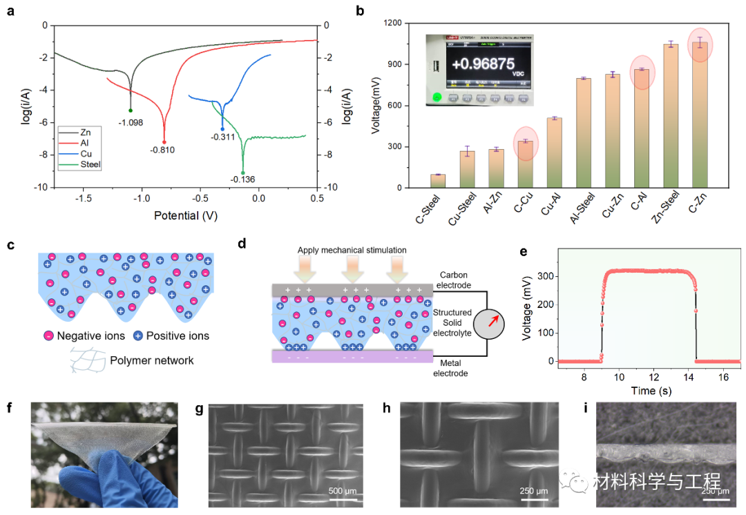 图2. 柔性电化学力学传感器的工作原理和结构表征。