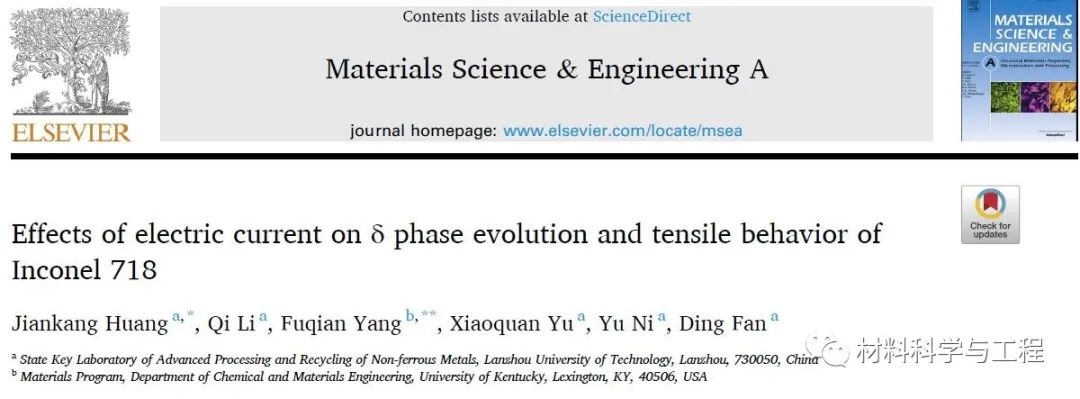兰州理工大学的一项最新研究探讨了直流电流对Inconel 718微观组织和力学行为的影响,分析了Inconel 718棒材在自然冷却至室温后机械强度的变化。相关论文以题为“Effects of electric current on δ phase evolution and tensile behavior of Inconel 718”发表在Materials Science & Engineering A。