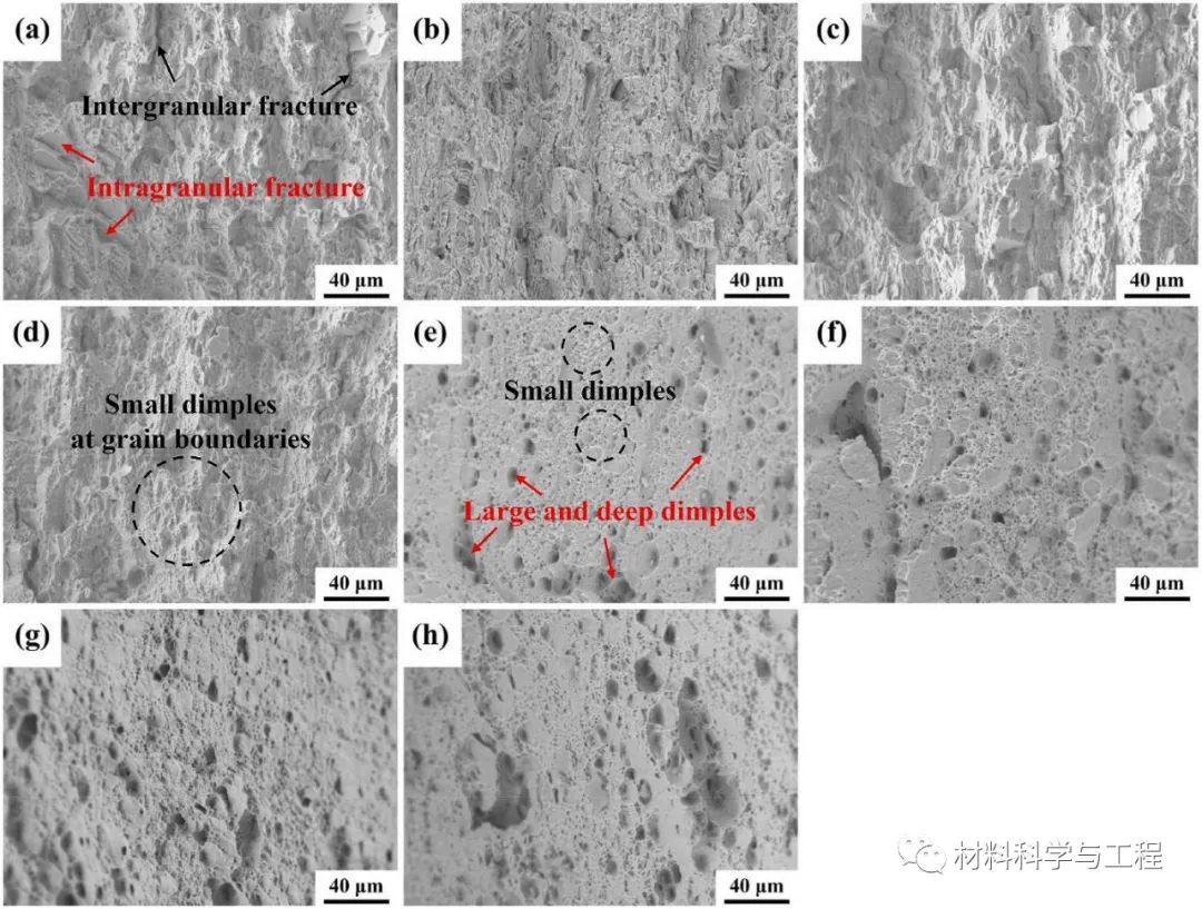 总之,本文通过EPT得到了细小的再结晶晶粒、降低了位错密度、使θ-MnNi相局部均匀分布,同时增强了Cu-20Ni-20Mn合金的强度和延性。形变时效合金的抗拉强度为942 MPa,延伸率为1.4%,形变时效Cu-20Ni-20Mn合金在10.7A/mm2电流处理后的抗拉强度和伸长率分别提高到950 MPa和11.3%,合金的脆性断裂演变为延性断裂。本研究阐明了EPT对组织的影响,证实了提高强度和延展性的有效作用。