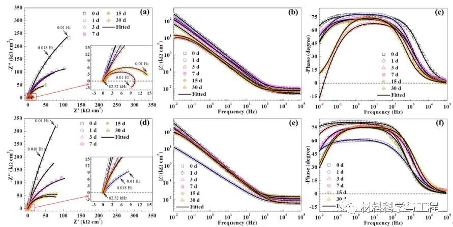 图4 不同浸泡时间下的电化学阻抗谱数据