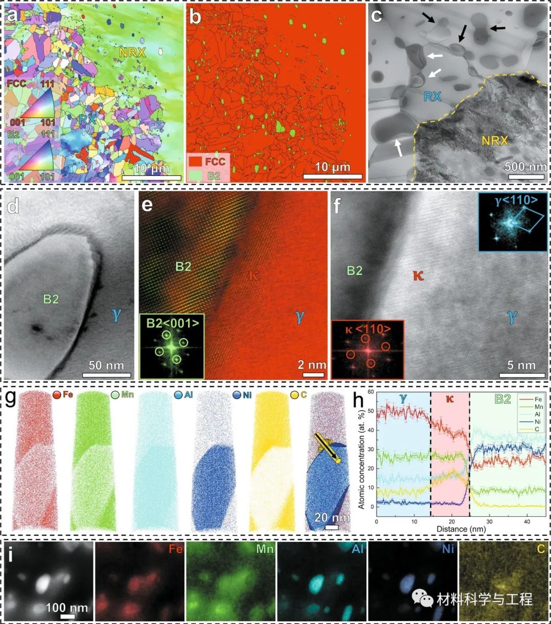 总之,本文展示了在具有非常高SFE(~79mJ/m2)的基于FCC的轻质CCS(毫米级)的准静态拉伸测试期间变形纳米孪晶的激活,这是一种有趣的机制组合。由于双纳米沉淀κ-碳化物和B2相,通过特定的合金设计策略,CCS显示出非常高的拉伸应力,从而达到了迄今为止传统轻钢无法达到的临界孪晶应力。高应力孪晶现象在变形后期提供了显着的应变硬化,从而抑制了基体和B2相之间非共格界面处裂纹的形核,从而导致材料具有优异的延展性。因此,研究报道了一种有前途的设计策略,通过触发具有高SFE的高性能结构材料中以前无法实现的变形机制,以提高其机械性能。