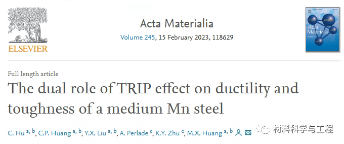 制造用于汽车应用的轻量化结构一直是人们的追求,实现这一目标的有效方法是采用先进高强度钢(AHSS)。除了高强度外,断裂韧性对于结构材料也是必不可少的。然而,这两种理想的性能对于大多数结构材料(如钢)来说是相互排斥的,这种与生俱来的冲突是众所周知的强度-韧性权衡。这种矛盾可以通过考虑钢的强化旨在阻止或抑制各种缺陷的位错滑行来理解,这将不可避免地诱发应变定位甚至引发微裂纹。因此,这些加固方法不适用于抗断裂性至关重要的应用。另一方面,对钢断裂韧性的主要贡献来自裂纹尖端附近的位错活动。这种机制导致了一个普遍但不幸的结论:具有较高强度的钢将具有更有限的位错运动,因此断裂韧性较低。