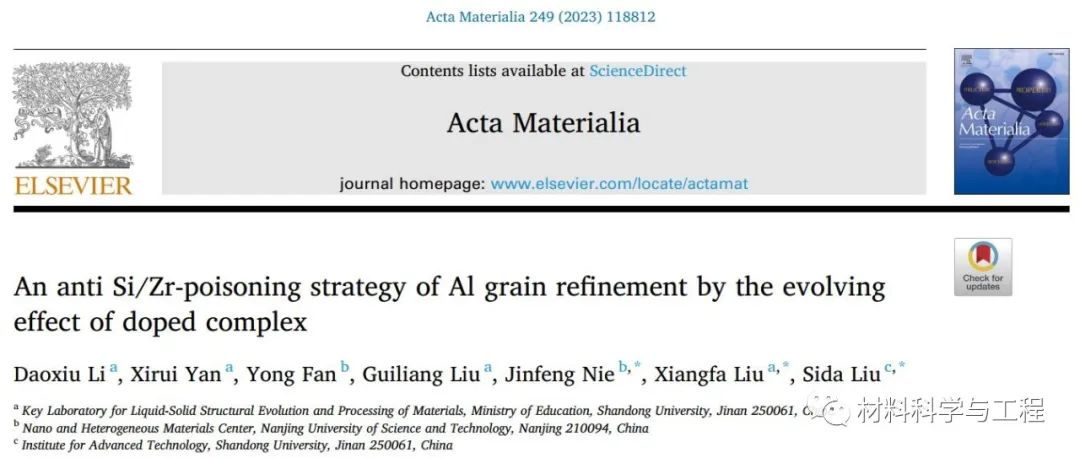 山东大学《Acta Materialia》:解决铝合金细化"中毒"难题!