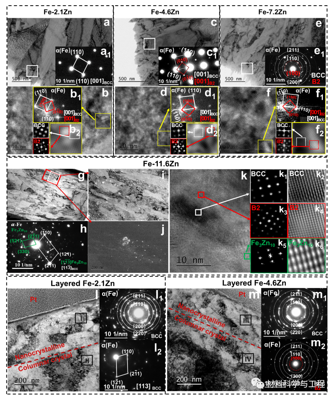 Fig. 2. The TEM analysis of Fe-Zn alloys.