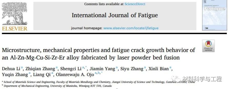 江西理工大学:增材制造7系铝合金的直接时效热处理及疲劳裂纹扩展行为