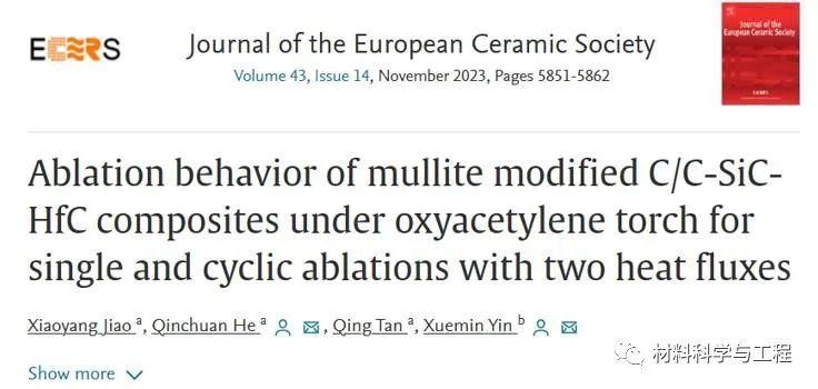 基于此,成都理工大学何秦川团队提出了用莫来石改性C/C-SiC-HfC复合材料,并研究了其在不同氧乙炔烧蚀条件和烧蚀模式下的耐烧蚀机理。