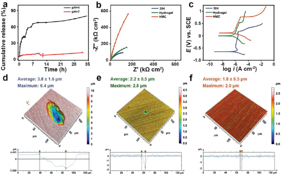 近日,东北大学的徐大可团队受珍珠母内无定形/结晶特征的启发,开发了一种由生物聚合物基水凝胶和致密金属有机骨架(MOFs)组成的机械坚固防污涂层。跨多尺度界面定制交联网络可以提供强度、消散应变并提高构建块的韧性,从而在各种基板上实现牢固且可扩展的配置,无论材料类别和表面拓扑如何。所得涂层作为合适的储层表现出独特的智能MOF降解或药物释放的主动防御行为,为广谱生物污染和腐蚀控制提供了突破性的性能。值得注意的是,在复杂的生物环境中进行长时间的测试过程中,既没有观察到海洋生物的附着,也没有观察到金属基质的MIC。本研究为综合防污腐蚀的潜在多机理提供了独特的见解,并开创了在海洋环境中设计下一代可靠MOFs衍生涂料的合理策略。该研究工作以题为“Nacre-Inspired Metal-Organic Framework Coatings Reinforced by Multiscale Hierarchical Cross-linking for Integrated Antifouling and Anti-Microbial Corrosion”的论文发表在国际顶级期刊《Advanced Functional Materials》上。本文报道了一种水凝胶锚定的MOF基涂层(HMC),该涂层模仿珠母无定形/结晶异相结构,以增强物理化学稳定性并增强其防污腐蚀性能。HMC是通过以原位渗透生物矿化方式组装多尺度构建块来实现的。这些构建块由纳米级增强和防污MOF单元组成,由含有海藻酸钠(SA),羧甲基纤维素(CMC)和聚乙烯亚胺(PEI)的复杂水凝胶粘合。具体而言,SA提供了丰富的MOF核,CMC提高了材料的柔韧性,而PEI增强了与基体的界面结合力,消除了表面电荷效应。在分层形貌和与天然珍珠层高度相似的化学成分的适当组合的鼓励下,所得HMC不仅显示出与表面无关的附着力,而且还具有机械坚固的防污腐蚀能力。合成的HMC可以容易均匀地涂覆在金属、橡胶、玻璃和塑料等不同的靶材上,而无需费力的表面预处理。HMC是在温和的条件下通过水凝胶锚定涂装方法制造的,指的是在固体表面上稳定地粘附防污腐蚀MOF基层的两步技术。通常,作为基于软生物聚合物的相,首先在基材上构建具有明确厚度的极其坚韧的水凝胶。使用具有氢键和共价交联网络的SA,CMC和PEI作为前体浆液,以模拟天然珍珠层中的多尺度部分。二价金属离子,如铜离子(Cu2+)可以以高度协同的方式优先与藻酸盐链的古尿酸嵌段结合,并入水凝胶中,通过离子交联进一步改善机械行为。毫无疑问,所得的水凝胶在多个尺度上具有高密度交联界面,可作为后续反应的受限成核反应器。然后,针对海藻酸盐中的金属离子,通过在水凝胶体系中沉积有机接头来介导原位生物矿化过程,从而得到纳米级表面附着的MOF异相单元。配位效应和约束效应的网络纠缠保证了水凝胶和MOF之间的稳定键合。最后,在表面完整地生成了具有高度有序结构的珍珠层启发的HMC。系统地研究了HMC的力学性能,以评估异质相“实体”结构在多尺度界面下的有效性。最佳SA/CMC水凝胶的拉伸性能(4:1)优于其他二元竞争者,实现了高拉伸强度(466.1 ± 5.8 kPa)和拉伸性(极限应变高达760%)的独特集成。可以看出,过量的CMC含量会使水凝胶由于分子间力和界面粘附力的恶化而不易变形和脆性。根据耗能机制,引入PEI链作为共价交联结构域,进一步提高水凝胶的韧性和MOF增强单元的承载能力。同时,PEI作为一种带正电荷的聚电解质,可以与带负电荷的SA/CMC结合形成电荷平衡表面,减少与污染物的静电相互作用,最大限度地减少生物污染粘附。由于蛋白质是海洋生物污染初始阶段的关键成分,因此选择牛血清白蛋白(BSA)作为模型污染物来监测不同表面的茴香粘附性能。一旦材料浸入BSA溶液中,对所有表面都进行了污染物的强烈吸收。达到稳定吸收后,引入PBS溶液去除表面上松散粘合的BSA。BSA在HMC上几乎完全可逆的吸附-解吸显示出高效的防污性能,其源于水凝胶-MOF异相结构,产生强烈的界面水合和空间排斥,以防止调节膜的形成。为了探索HMC的防污多样性,以小球藻属、加尔巴纳异趾菌和三角趾藻为典型生物,测试了涂层上藻类生物膜的生长状态。结果表明,HMC对广泛的生物污染物(包括蛋白质,细菌和藻类)表现出非凡的防污能力。在海洋环境下,极易发生微生物附着和腐蚀性生物膜形成的金属材料除了海洋生物污染外,还不可避免地要经历MIC。众所周知,MIC工艺会导致金属表面周围的局部酸性微环境,这可能会触发MOFs的快速降解以增强抗菌效果。而该研究的HMC具有独特的致密微观结构和抗菌能力,在抑制MIC方面具有极好的前景。因此,HMC因其在金属微生物腐蚀抑制方面的巨大潜力而被确定,这归因于包含致密异质相构型的保护屏障的三重协同效应,pH触发的Cu2+,以及强化的界面相互作用。由于其高比表面积和丰富的孔隙率,MOFs可以作为多功能加载平台,在释放前分离和保护药物,实现积累后的及时杀菌剂释放。MOFs的密集构建可以保证HMCs丰富的多孔结构,使其具有载药能力。此外,载药HMC将通过针对污垢生物体粘附行为的可控药物释放提供积极和稳定的防御。考虑到其独特的优势,相信HMC有可能为防污和防腐蚀提供有效的便携式解决方案。总之,该研究展示了一种符合仿生“实体”设计的工程水凝胶锚定MOFs涂层,该涂层克服了天然MOFs的性能-加工性权衡,并实现了稳健有效的防污腐蚀应用。结合有序的异相结构和多尺度界面交联相互作用,通过足够的能量耗散使所得涂层具有增强的强度和外在韧性。独立于表面的锚定能力是由生