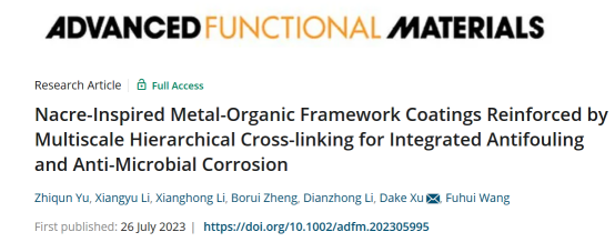 东北大学《AFM》: 由珍珠层启发的MOFs涂层!