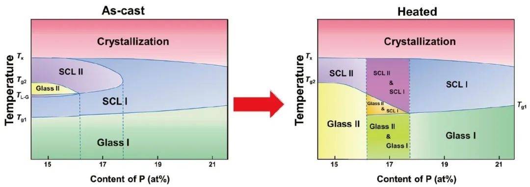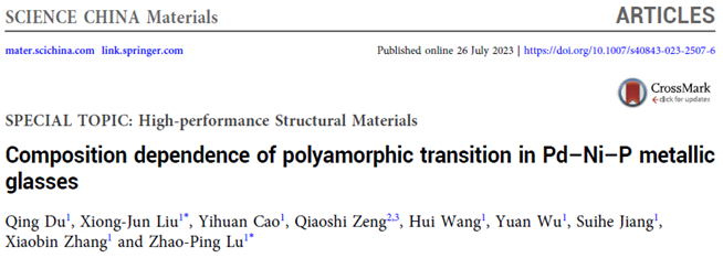 近日,北京科技大学吕昭平教授和刘雄军教授等人在Science China Materials发表研究论文,系统研究了(PdNi)100-xPx(15 at% < x < 21 at%)非晶合金中加热诱导多形性转变的化学成分依赖性。