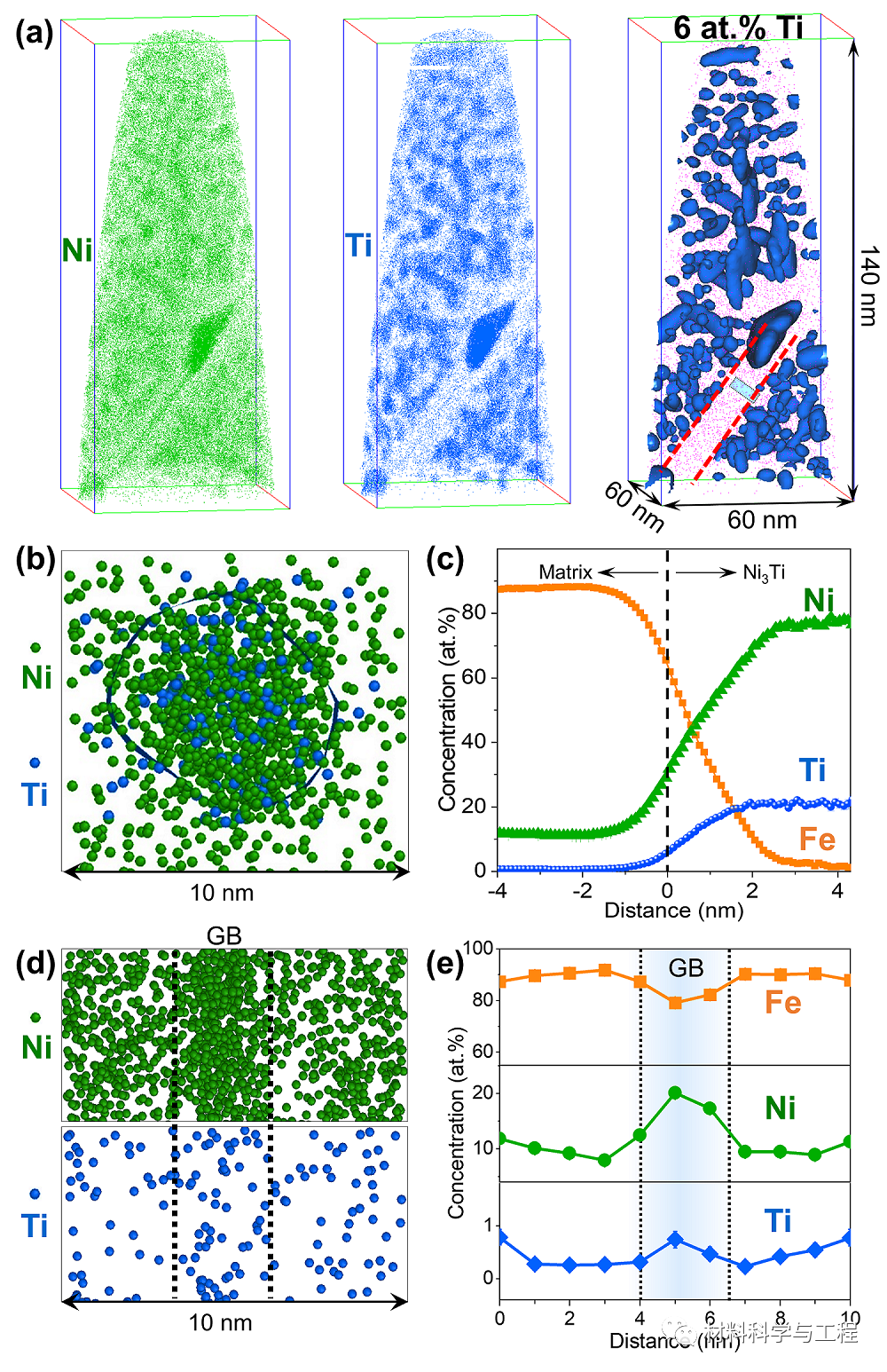 图3. 无Mo钢时效2 h后析出相和晶界元素偏聚的APT表征