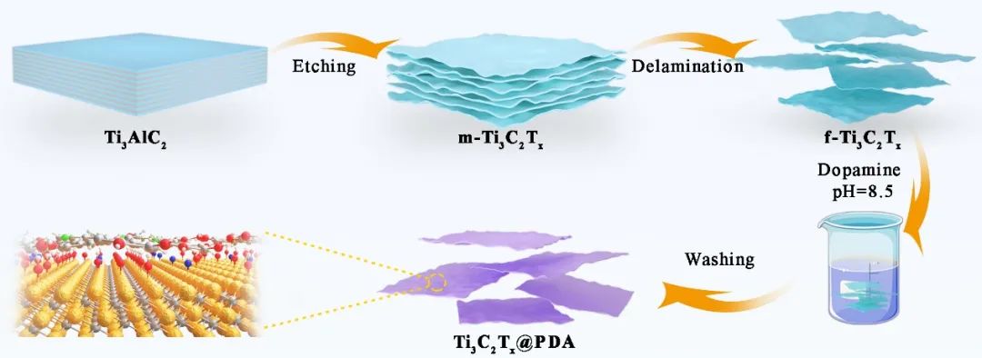 图1. Ti3C2Tx@PDA的制备流程。