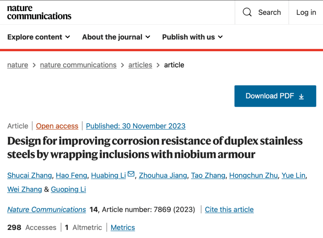 综上所述,李花兵教授团队采用铌装甲( Z相)包裹有害夹杂物的策略克服了长期存在的"夹杂物引起的腐蚀失效"问题,从而显著提高了DSS的耐腐蚀性能。该技术已在一系列DSS和工业生产中得到验证,具有普适性。显然,该策略为不锈钢的腐蚀防护铺平了道路,代表了确保DSSs构建的高端设备长寿命和安全运行的进步。