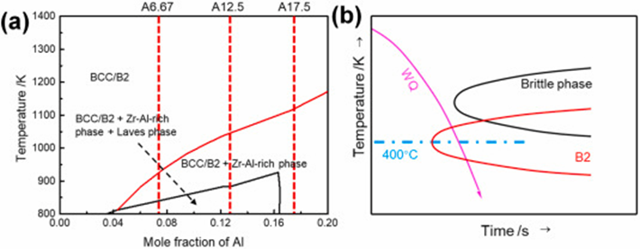 图6 . ( a ) BCC - LWHEA的伪二元图;( b ) TTT图示意图。