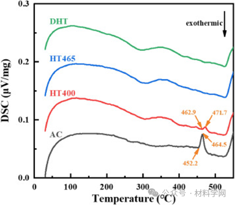 (4). 在 1%塑性变形后,退火的 DHT 样品没有出现 Lüders 高原,表面劣化几乎可以忽略不计,而退火的 HT465 样品则表现出相反的特征。这是因为位错网络均匀地分布在后一种样品的基体中,从而进一步抑制了位错运动,阻止了吕德斯带的形成。
