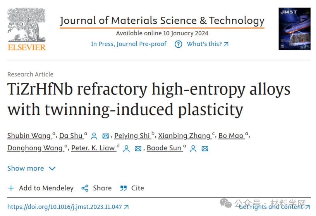 上海交通大学《JMST》:35 %均匀延伸率!低温下难熔高熵合金孪生诱发超塑性!