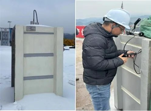 大桥所在区域夏季最高温达40℃,经长时间暴晒,塔柱表面温度高达70℃。冬季最低温低至-6℃,且风力大,滴水成冰。2023年8月,参研团队在大桥北索塔区域制作索塔缩比工程样件,在相同环境条件下进行应用试验。