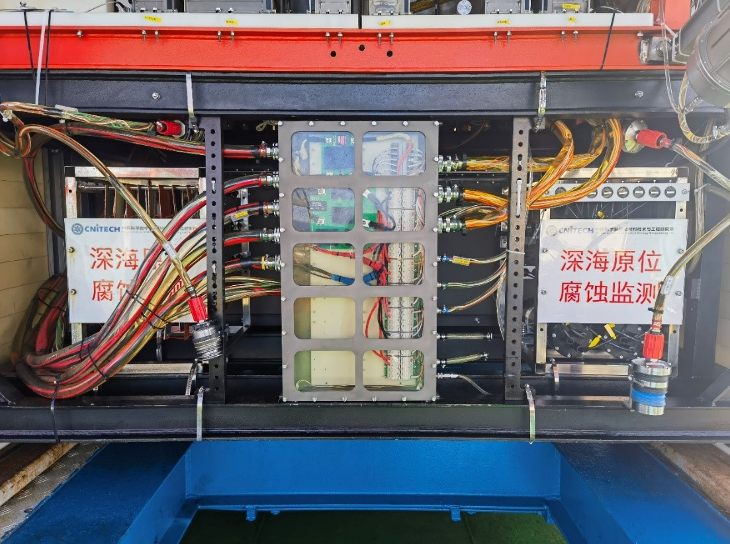 本次深海腐蚀损伤试验在菲律宾海5560米(最深7730米)海底持续工作51天,共搭载16个腐蚀数据采集通道及200余片腐蚀挂板,获取不锈钢、铜合金、铝合金、镍合金、钛合金、碳钢、深海重防腐涂层、防污涂层、自修复涂层及深海牺牲阳极等10余类工程材料的腐蚀损伤试验数据13万余条。