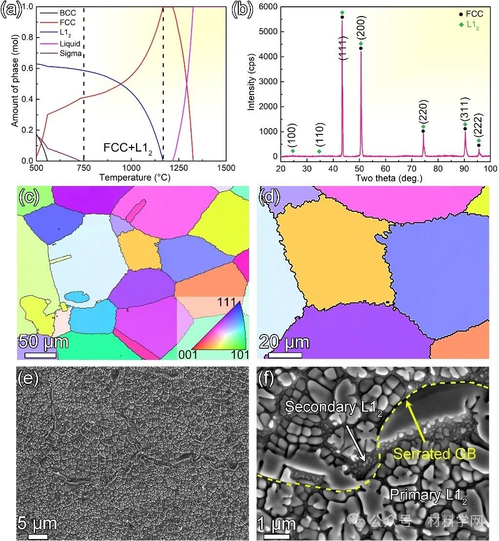 研究者们结合合金设计与机械热处理调控,成功设计出了一种具有高密度共格纳米析出和锯齿晶界形貌的高熵合金,能够在较宽温度范围内(超低温到高温)均具有优异力学性。与此同时,基于理论计算与微观结构表征,阐明了同时在宽温域范围内获得优异强塑性的内在机制。这些研究发现也有望应用到其他的金属结构材料,从而进一步推动材料的组织优化与性能提升。