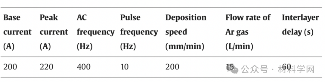 表1. WAAMed GW93K的处理参数