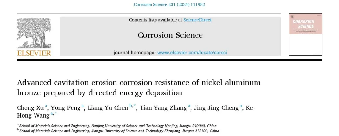 为此,南京理工大学的研究人员对DED生产和铸造NAB合金的静态腐蚀性能进行了研究。通过多尺度电子显微镜分析了DED生产的NAB和铸造NAB之间的微观结构差异,并在不同环境中进行了空化侵蚀实验,讨论了DED制备样品的空化侵蚀行为。相关研究成果已发表在近期的Corrosion Science杂志上。