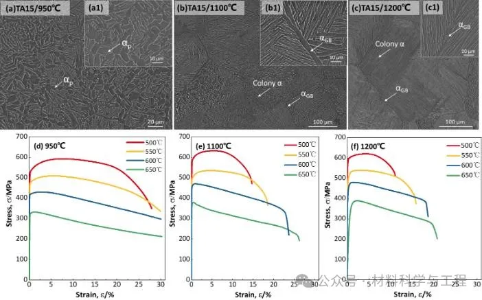 西安理工大学李树丰教授团队在阐明高温钛合金TA15(Ti-6.5Al-2Zr-1Mo-1V)在室温条件下临界晶粒尺寸dc与温度之间关系的基础上,进一步揭示了其高温Inverse Hall-Petch效应。本研究通过晶粒尺寸设计,形成异常粗大的晶粒,进一步放大晶界在高温下的软化效应。在TA15合金的服役温度(550℃)前后进行高温拉伸实验,结果表明试样的屈服强度和晶粒强度随着温度的升高而降低。高温下晶界和相界作为主要的变形位置,破坏了α/β相之间的伯格斯矢量关系({110}β//{0001}α和<1-11>β//<11-20>α),形成了大量的小角度晶界。其次,高温为各个滑移系启动提供了足够的能量,降低了晶粒滑移系的临界剪切应力(CRSS)。通过高温原位SEM和高温纳米压痕等实验,发现在550℃前后材料的变形机制和失效机制发生转变;当温度低于550℃时,试样以晶粒变形(位错介导变形)为主,穿晶断裂;当温度高于550℃时,试样以晶界变形(晶界迁移,晶界滑移;晶界介导变形为主)为主,沿晶断裂;晶界表现出高温逆Hall-Petch效应,这表明高温下TA15试样的临界尺寸dc要远大于20nm。因此,TA15试样的临界尺寸dc随着温度的升高而变大(Fig. 6b)。