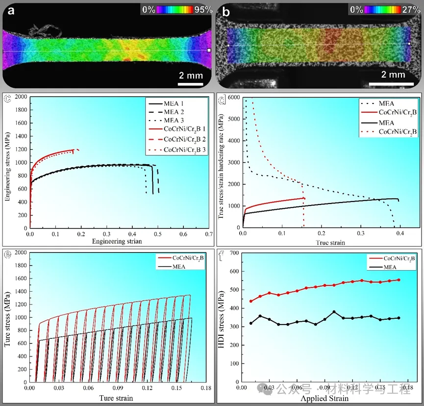 图1:CoCrNi/Cr2B 复合材料的力学性能曲线。