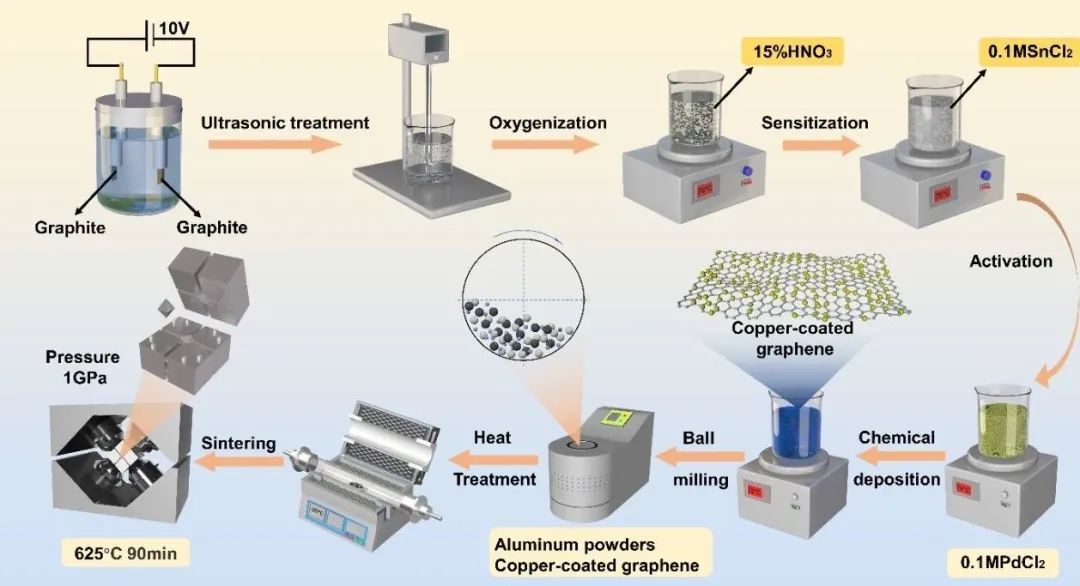图1 镀铜石墨烯铝复合材料制备流程示意图