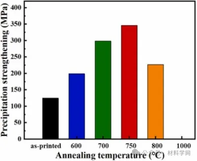 图11所示。不同温度退火后样品析出强化的理论贡献。