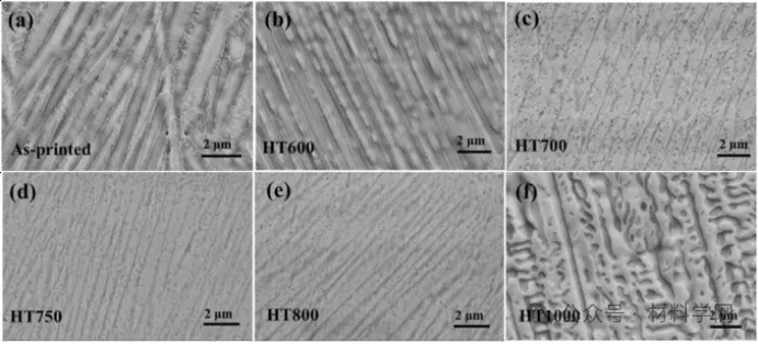 图4所示。印刷和退火样品的显微组织演变。在600 ~ 750℃退火后,纳米层状结构保持稳定。