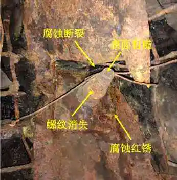 图2 高家堡煤矿回采巷道锚杆腐蚀情况