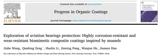 数据来源与出处 相关研究成果以“Exploration of aviation bearings protection: Highly corrosion-resistant and wear-resistant biomimetic composite coatings inspired by mussels”为标题发表在《Progress in Organic Coatings》上。
