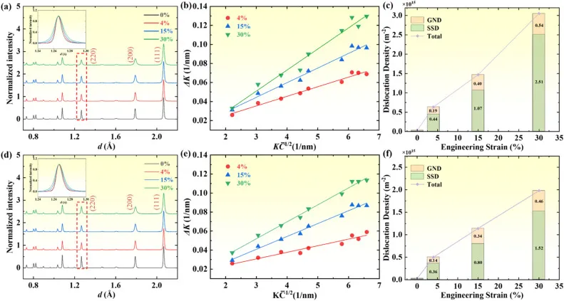 3. 低温下卓越的应变硬化:一方面,我们利用 DP 行为引入晶粒尺寸异质性,从而产生明显的、与温度相关的 HDI 效应,从而显着增强应变硬化能力。另一方面,精细 L1 引起的“滑移面柔化”效应2沉淀导致增强的动态滑移细化机制。以上两个因素,以及 MEA-AT-700 中不常见的 SFs/NTs 导致低温下的高 SHR。因此,仔细控制 DP 行为策略有可能用于改善低温应用中沉淀增强材料的机械性能。