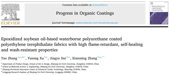数据来源与出处 相关研究成果以“Epoxidized soybean oil-based waterborne polyurethane coated polyethylene terephthalate fabrics with high flame-retardant, self-healing and wash-resistant properties”为标题发表在《Progress in Organic Coatings》上。