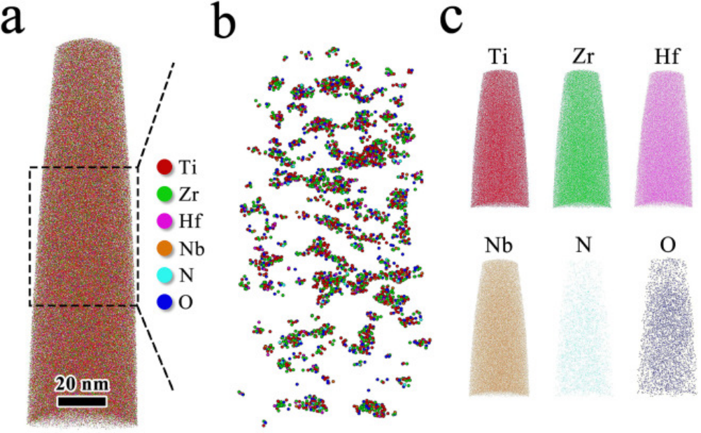 难熔高熵合金(RHEA) 包括 W、Ta、Mo、Nb 和 Hf 等难熔元素,在高温下表现出优异的抗软化性和相稳定性,使其成为航空航天、核反应堆和其他高应力应用的有希望的候选者。然而,RHEA 仍然面临重大挑战,主要是由于其强度低或固有的脆性。TiZrHfNb RHEA 以其稳定的体心立方 (BCC)结构而闻名,因其卓越的拉伸延展性而受到关注,但在1 GPa 以下的屈服强度较低。提高 TiZrHfNb RHEA 的屈服强度仍然是该领域的重大挑战。