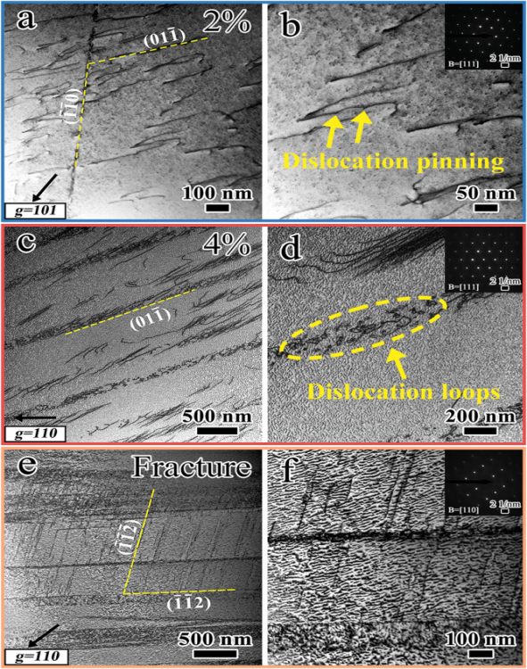 图6.NO-2 合金在不同真实应变下的典型 TEM 图像