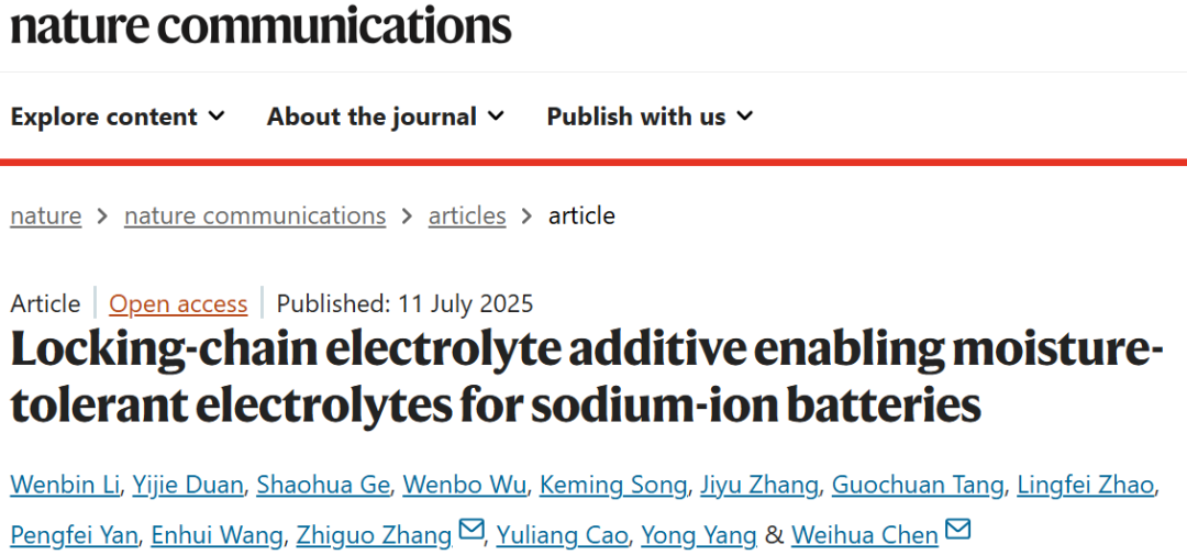 Li, W., Duan, Y., Ge, S. et al. Locking-chain electrolyte additive enabling moisture-tolerant electrolytes for sodium-ion batteries. Nat Commun 16, 6405 (2025). https://doi.org/10.1038/s41467-025-61603-6