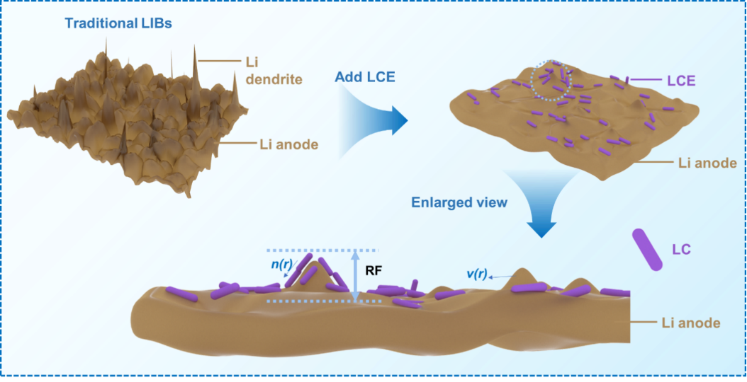 图14 液晶电解质抑制锂枝晶生长机理图