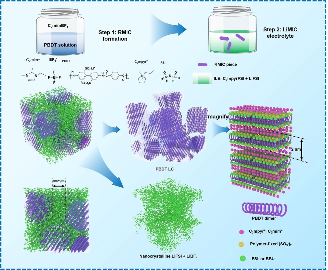 图8 三维液晶电解质应用经典案例:LiMICs的合成机理图。