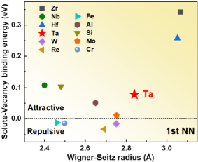 图3 由DFT计算得到的溶质-空位结合能(1st NN)